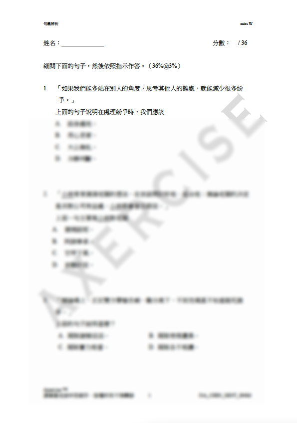 細閱下面的句子,然後依照指示作答。(36%@3%)
