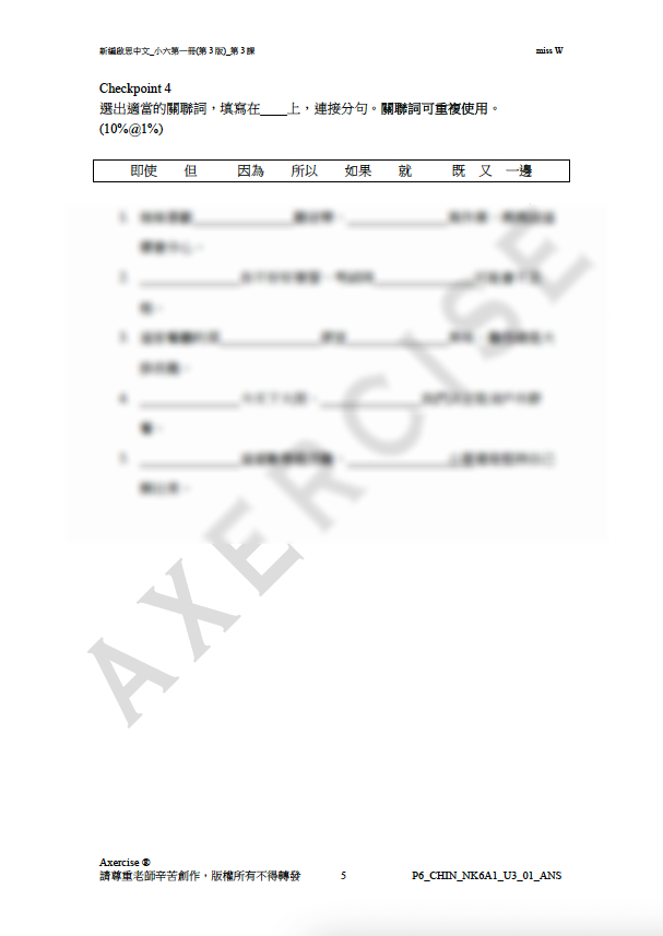 小六文 課文詞語、關聯詞 練習PDF