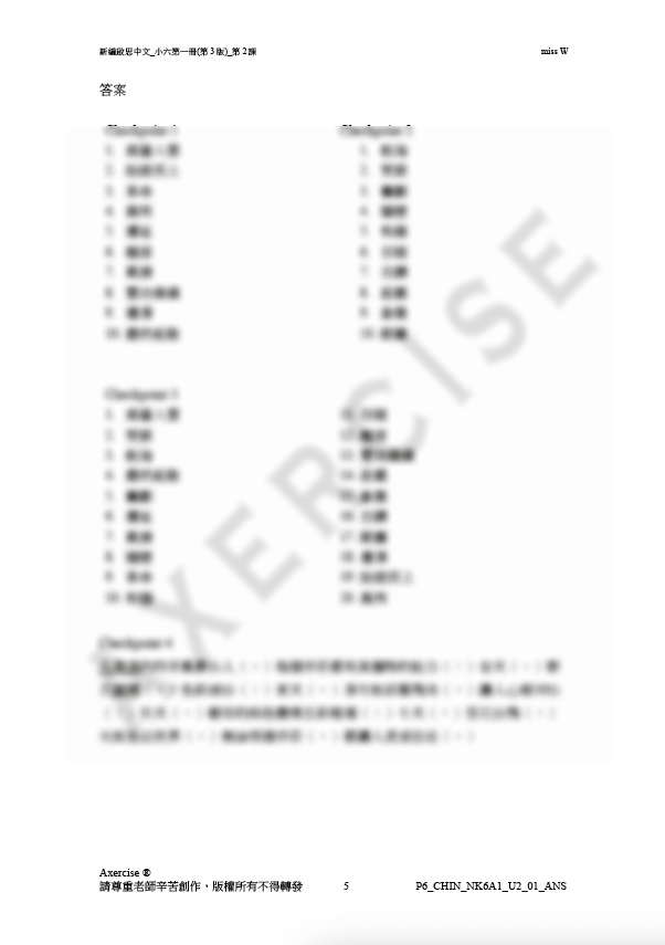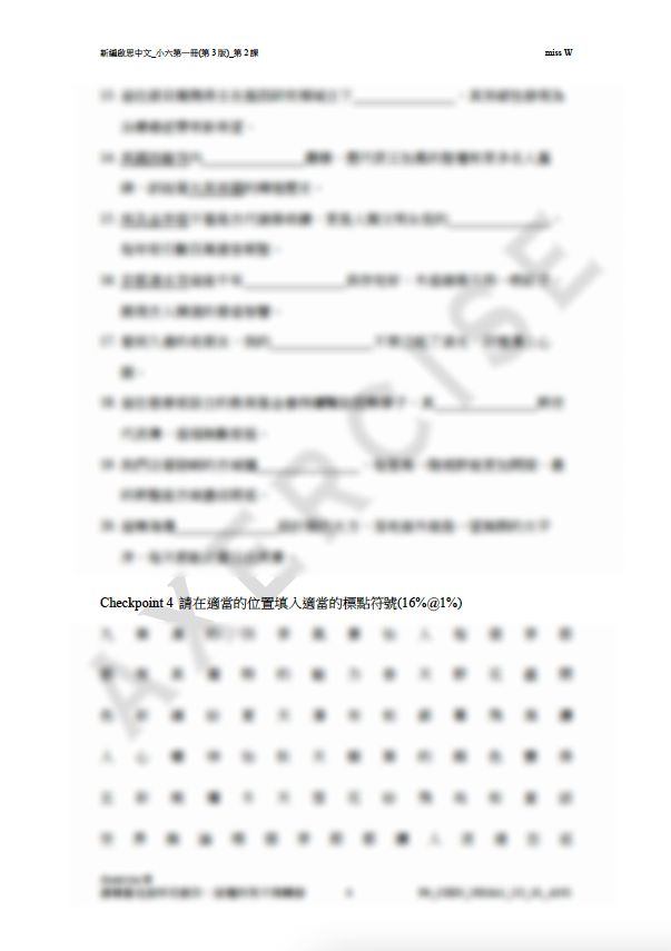 小六中文 課文詞語、標點符號 分號 練習PDF
